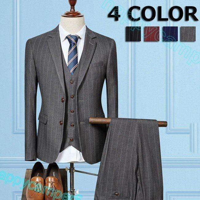 ストライプ ビジネススーツメンズ 長袖 上下スーツ メンズ ブ パンツ フォーマル オールシーズン対応 職業服 紳士服 ビジネス 3点セット 4色 ブランド買うならブランドオフ